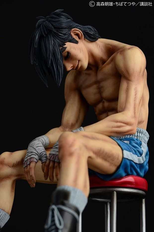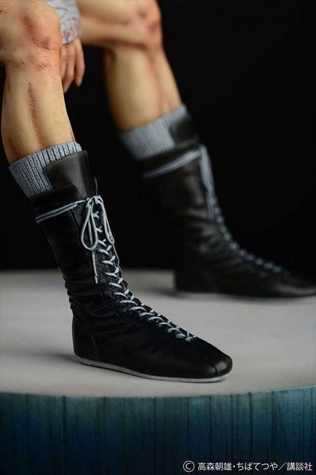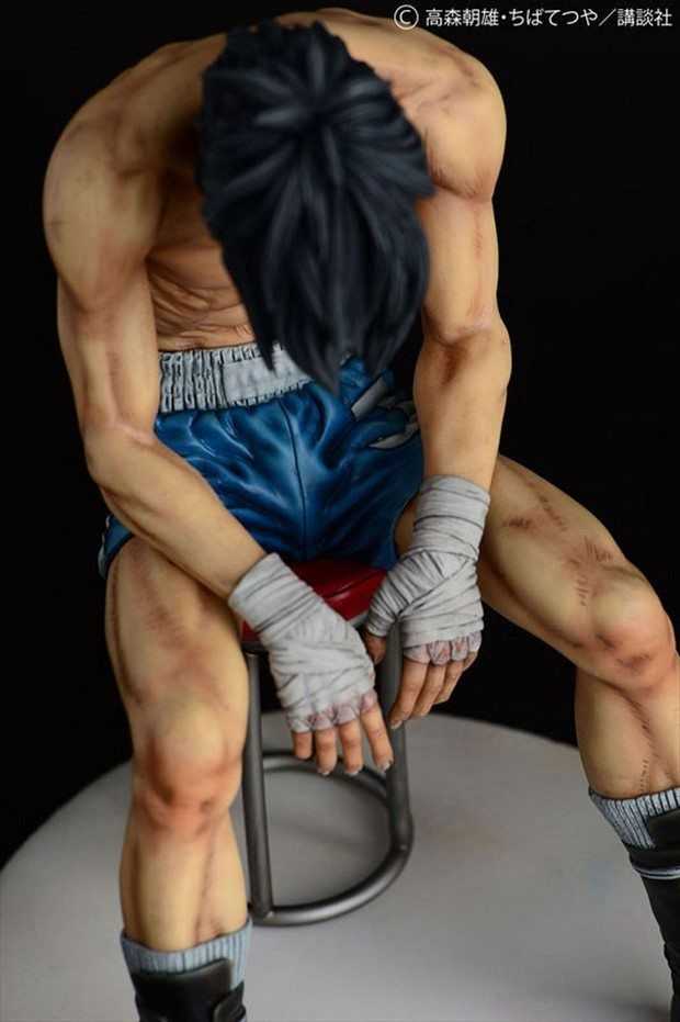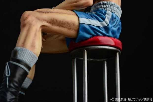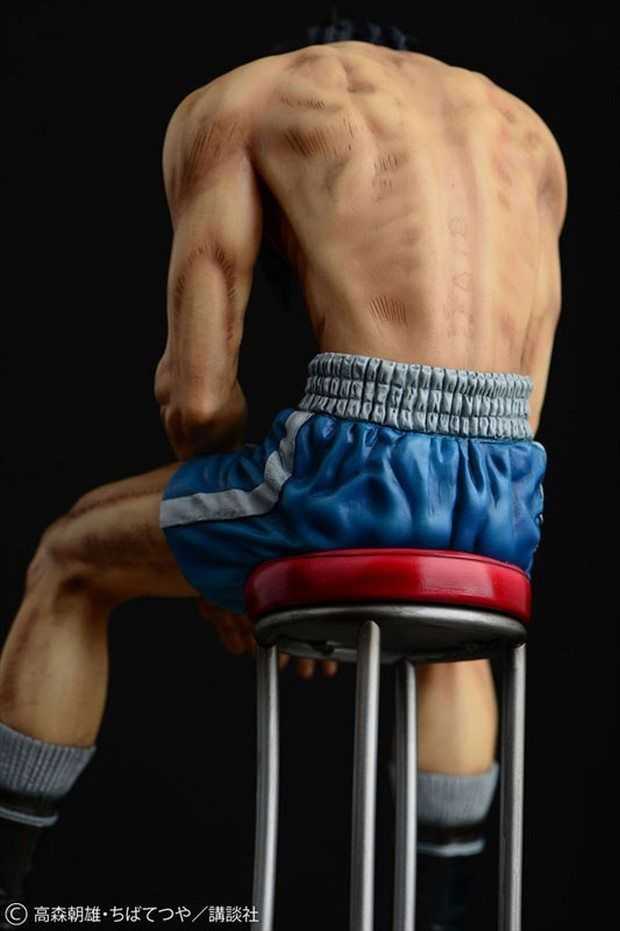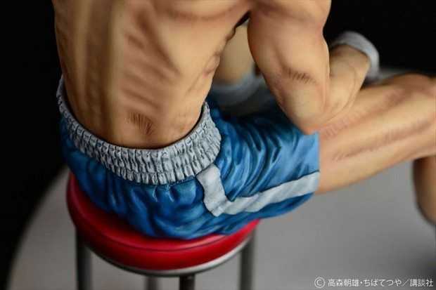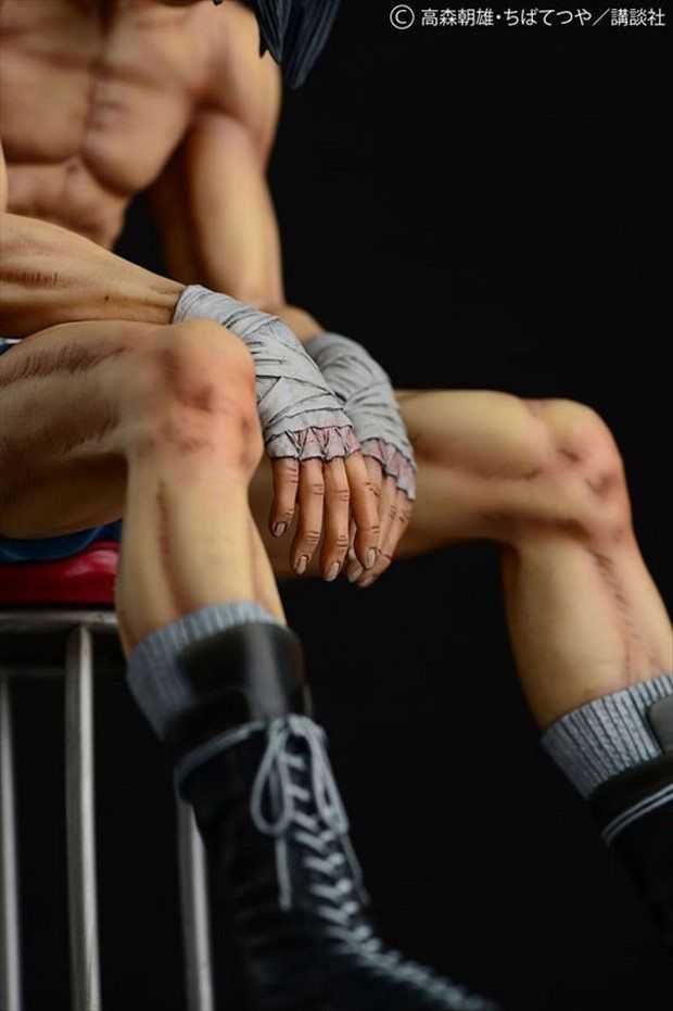 Prodotta in resina, la statua è stata scolpita da Ken Matsuura in scala 1/6 per un’altezza di circa 24 cm. La posa mostra Rocky Joe dopo il suo combattimento finale contro José Mendoza, seduto su un seggiolino con la testa abbassata e le braccia tra le gambe.