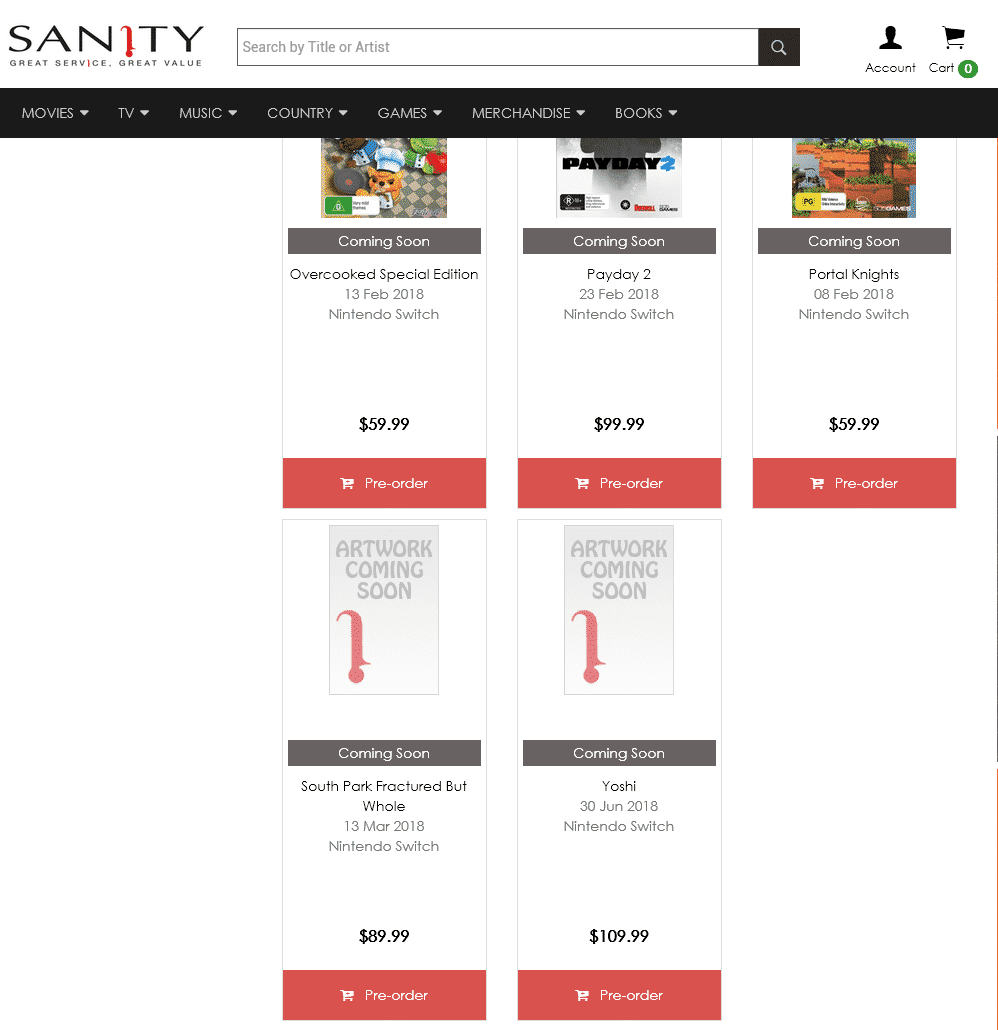 La notizia viene dall’Australia dove la catena Sanity ha avviato sul proprio sito i preorder per la versione Switch del gioco.