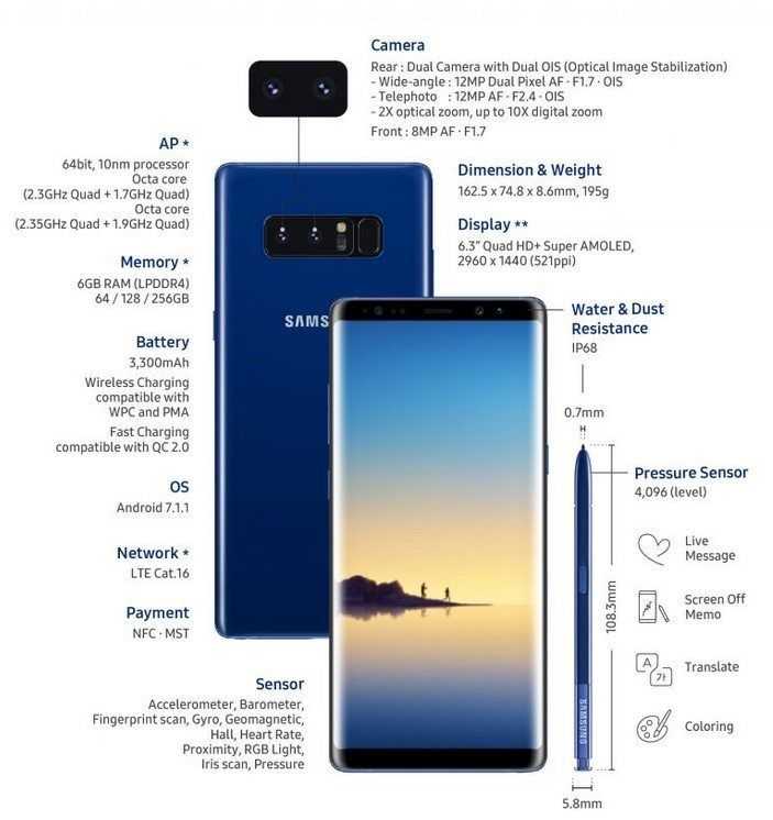 A completare il tutto la certificazione IP68 del Galaxy Note 8. Il dispositivo è quindi resistente all’acqua e alla polvere, permettendovi il suo utilizzo praticamente ovunque e in qualsiasi condizione meteo.