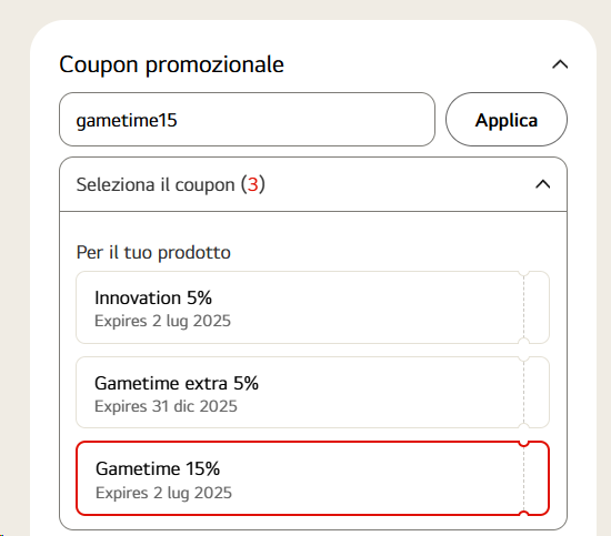 Ecco tutti i dettagli sui prodotti in promozione, con prezzo di listino, prezzo scontato per utenti registrati, prezzo finale con coupon GAMETIME15 e link per l’acquisto: