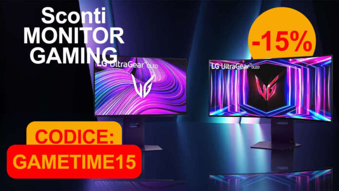 Inserendo il nostro codice GAMETIME15 al momento del checkout si ottiene il 15% di sconto immediato su una selezione di 7 monitor LG UltraGear. Non serve avere un account LG, ma chi è registrato riceverà un ulteriore 2% di sconto automatico a carrello.