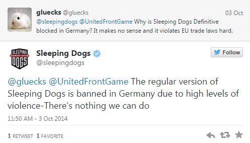 Square Enix ha pubblicato dei nuovi screenshot tratti da Sleeping Dogs Definitive Edition. Il gioco sarà disponibile il 10 ottobre 2014 su PlayStation 4, Xbox One e PC, ma il publisher ha annunciato tramite Twitter che la Definitive Edition (a differenza dell’originale Sleeping Dogs) non sarà disponibile in Germania, dove la vendita del titolo sarà completamente vietata. Il motivo principale è che il gioco contiene scene con alti livelli di violenza.