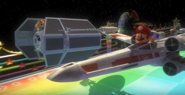 Tra i personaggi che prendono parte alla gara, ci sono Bowser a bordo di un TIE fighter e Yoshi di un A-Wing, giusto per citarne un paio. Buona visione.