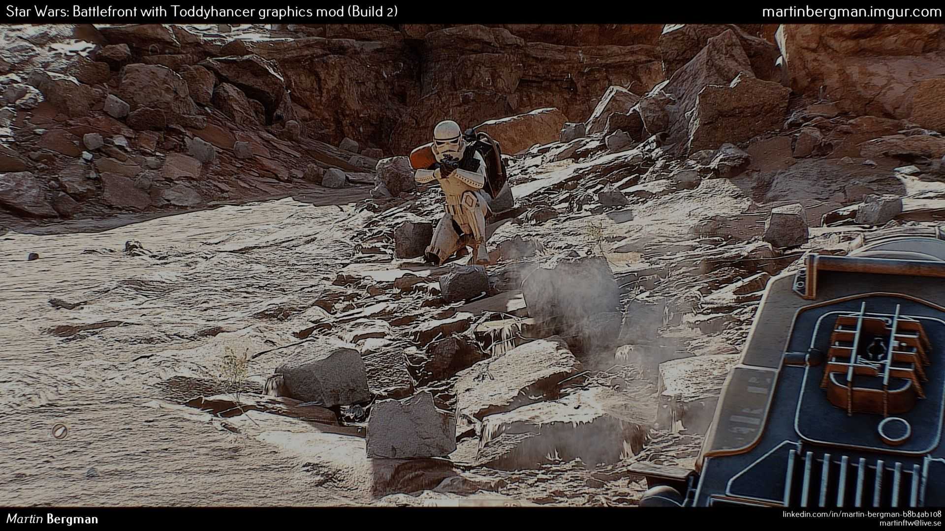 Star Wars Battlefront è già molto bello vedersi, ma la mod grafica Toddyhancer per il titolo EA si propone qualcosa di completamente diverso. Sembra quasi di essere catapultati nel nuovo film di Abrams e provare un gioco che si avvicina visivamente al nuovo capitolo della saga. Il che è fantastico, perché sembra di essere in un film.