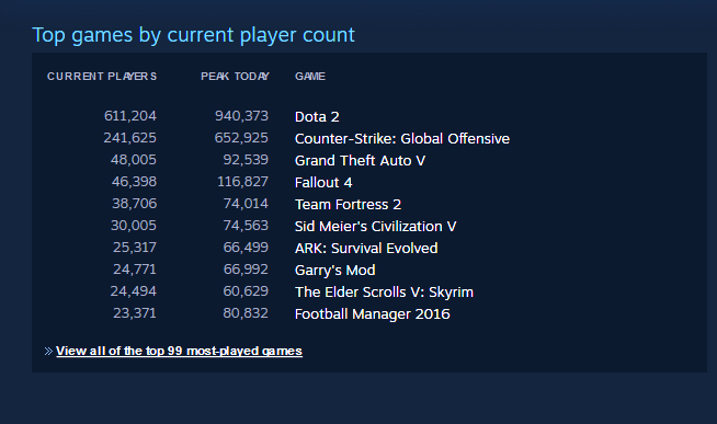 - Dota 2 al primo posto con 940,373 utenti connessi