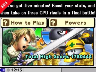 Dopo aver mostrato personaggi e stage, Masahiro Sakurai ha pubblicato tramite il Miiverse due immagini che mostrano la schermata del main menu della versione 3DS di Super Smash Bros. (3 ottobre 2014). Lo schermo superiore della console, visualizzerà le modalità di gioco, varie opzioni, l’online e la modalità sfida. Lo schermo inferiore invece, ci introdurrà a un breve tutorial e a quella che sembrerebbe essere l’opzione per accedere ai poteri dei personaggi.