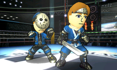 Super Smash Bros. si mostra nuovamente tramite Miiverse. Masahiro Sakurai ha pubblicato un nuovo screenshot tratto dalla versione 3DS (3 ottobre 2014) che mostra due personaggi Mii e le loro personalizzazioni. Uno è stato trasformato in un Ninja (con tanto di coprifronte tipo Naruto), l’altro invece con uno stile più aggressivo e con tanto di maschera simil-Jason di Venerdì 13.