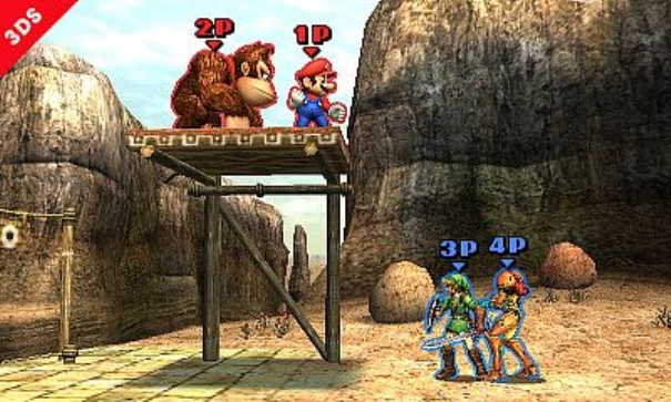 Masahito Sakurai ha pubblicato tramite il Miiverse una nuova immagine di Super Smash Bros, questa volta tratta dalla versione 3DS. Lo screenshot mostra una battaglia a squadre tra due team, composti da Mario e Donkey Kong da una parte e Link e Samus dall’altra. Vi ricordiamo che la versione 3DS del gioco sarà disponibile nel corso dell’estate, mentre quella Wii U è attesa nel periodo invernale.