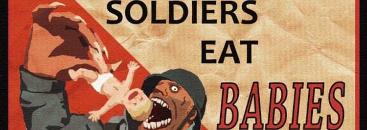 Per sottolineare come gli Stati Uniti usino la propaganda per influenzare il pensiero dei cittadini, un documentario storico trasmesso su un canale della televisione russa ha mostrato un poster della Prima Guerra Mondiale che ritrae un soldato tedesco che mangia un bambino, nel vero senso della parola. C’è soltanto un problema: non è un vero e proprio poster appartenente a quel periodo, bensì una fan art di Team Fortress 2!