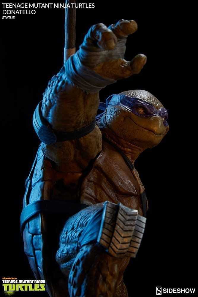 La statua è alta circa 40cm per un peso di 8Kg, è realizzata in resina. Donatello è in una posa di attesa con il suo “Bo” appoggiato sul carapace pronto all’azione. La base diorama, dove poggia la statua, altro non è che una riproduzione delle fogne di New York, città natale delle tartarughe.