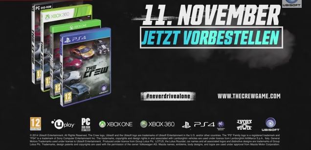 Ubisoft ha pubblicato un nuovo trailer di The Crew, il nuovo MMO-racing con caratteristiche RPG. Il video mostra alcune delle auto disponibili e i luoghi che faranno da sfondo alle corse automobilistiche. Ma la novità vera e propria, ci viene svelata alla fine del video: il gioco è atteso l’11 novembre 2014 su PlayStation 4, Xbox One e PC, ma è apparsa anche la cover Xbox 360. The Crew infatti, sarà disponibile anche sulla console old-gen di Microsoft e Asobo Studio si occuperà dello sviluppo insieme a Ivory Tower.