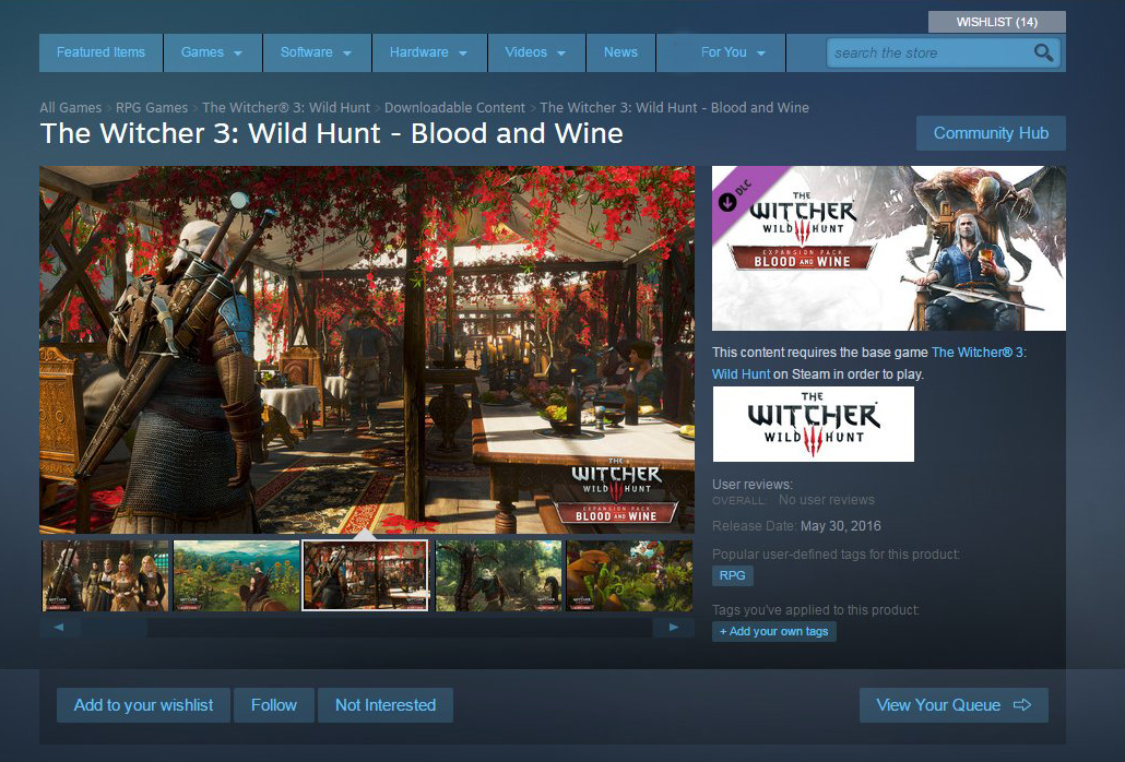 Blood and Wine, seconda e ultima espansione di The Witcher 3, verrà distribuita entro fine mese se quanto suggerito da Steam dovesse essere vero.