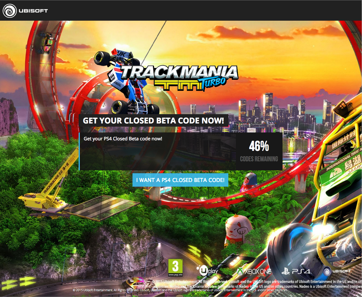 Volete farvi un giro in anteprima con Trackmania? Smettete IMMEDIATAMENTE di leggere e puntate il browser sulla pagina Facebook del gioco. Qui troverete i link per riscattare una chiave per Xbox o PlayStation 4. Correte che finiscono in fretta. Tenete conto che in questo istante, circa il 60% delle chiavi PS4 è andato, mentre per Xbox One ce ne sono ancora tantissime. Uno scarto che riflette bene l’enorme differenza di diffusione delle due console.