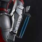 La tuta ha una colorazione metallica e sarà dotata anche di effetti a luce led nel petto e negli occhi, inoltre le braccia sono intercambiabili con le lame Spacium e troviamo in dotazione anche una seconda testa dove è possibile vedere il viso di Shinjiro con la mano sinistra che tiene la maschera.
