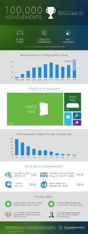 Per festeggiare questo risultato, il sito TrueAchievements ha pubblicato un’interessante infografica con l’analisi dei primi 10 anni di Achievements per le console Xbox.
