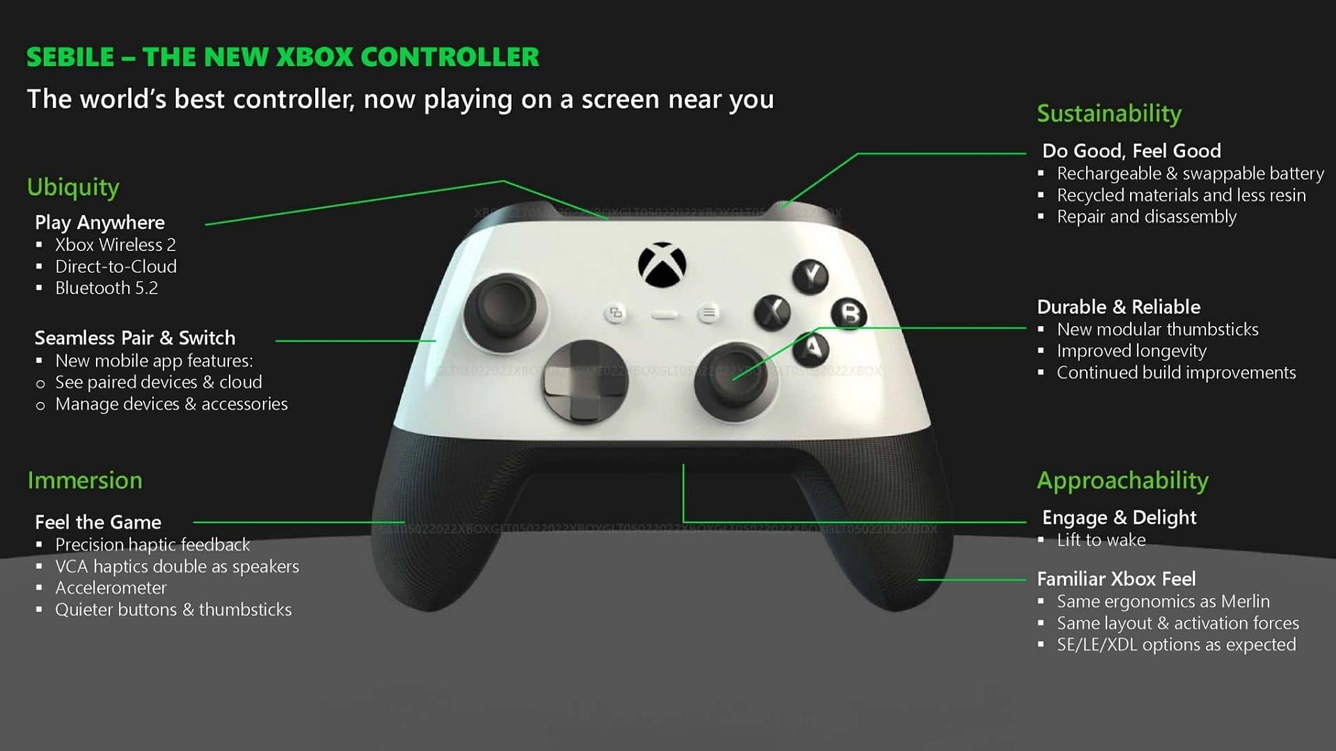 Sebile, questo è il progetto del nuovo controller che mira a sfidare il DualSense di PS5 sul suo stesso terreno di gioco. Dal caso FTC V. Microsoft è infatti trapelato il controller che sarà incluso insieme alla nuova Xbox Series X All Digital, anch’essa leakata in un documento. Si tratta di un controller molto più tecnologico di quello disponibile attualmente su Xbox e che presenta alcune delle feature viste già sul controller rivale.