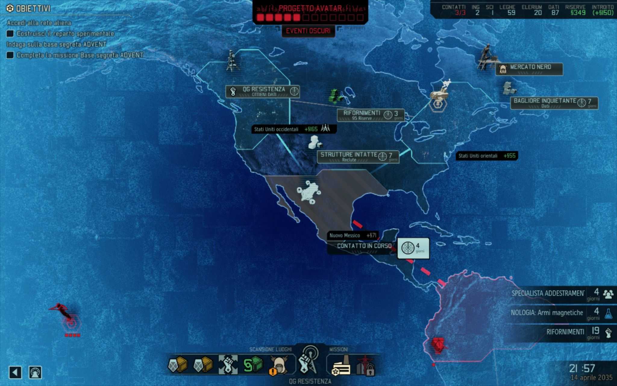 Alla prima partita in molti rischiano di trovarsi sopraffatti dai progressi nemici prima ancora di capire le dinamiche di gioco, che per inciso sono ancora più impegnative e basate su risorse che non bastano mai. Dovendo riconquistare il globo, la modalità scansione abbraccia una visuale simil Risiko con le cellule di resistenza divise in zone che dividono ciascun continente in due o più parti.