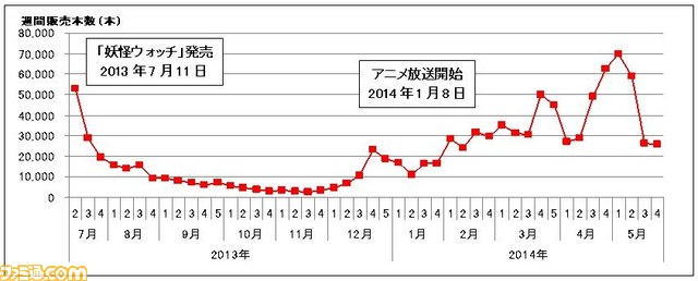 Famitsu ha anche pubblicato un grafico che mostra la progressione delle vendite del gioco da luglio 2013 a maggio 2014.